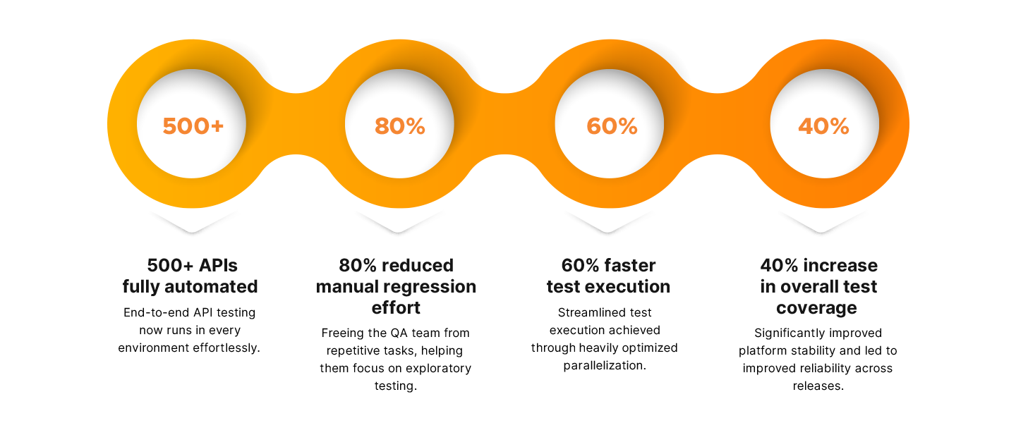 Manual execution of hundreds of API tests delayed deployment cycles and reduced confidence in releases.